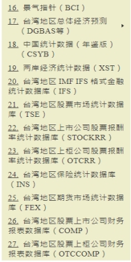 每27大模块数据,包含台湾地区1800家上市柜公司股票/期货完整资源、两岸经济统计相关数据